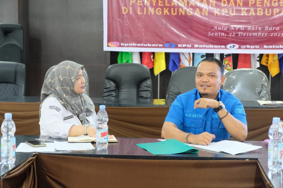 KPU Batu Bara- Bertempat di Aula Kantor Komisi Pemilihan Umum (KPU) Kabupaten Batu Bara, KPU Kabupaten Batu Bara adakan kegiatan Rapat Pleno KPU Kabupaten Batu Bara, Senin, (12/01/26) Rapat yang dimulai pada pukul 10.00 WIB ini dipimpin dan dibuka secara langsung oleh Ketua KPU Kabupaten Batu Bara, Erwin bersama Anggota KPU Kabupaten Batu Bara diantaranya, Abdillah, Burhan, Sulianto dan Tri Faith Gushendipo Manalu. Rapat ini dihadiri pula oleh Sekretaris KPU Kabupaten Batu Bara, Adhe Siska Amelia Rinanda dan seluruh jajaran Kasubbag di Lingkungan Sekretariat KPU Kabupaten Batu Bara beserta Notulen Rapat Nila Kartika Utami Abidin. Rapat pleno yang membahas beberapa agenda penting KPU Kabupaten Batu Bara ini berjalan dengan tertib dan lancar. (AD) ....