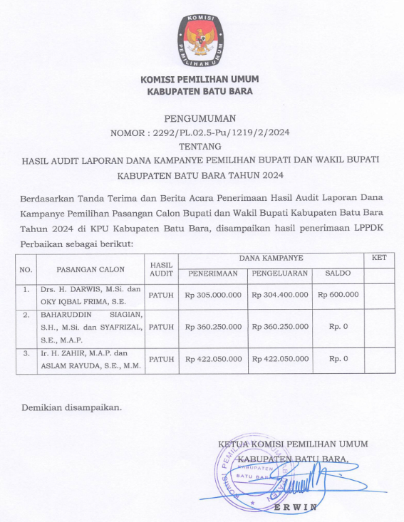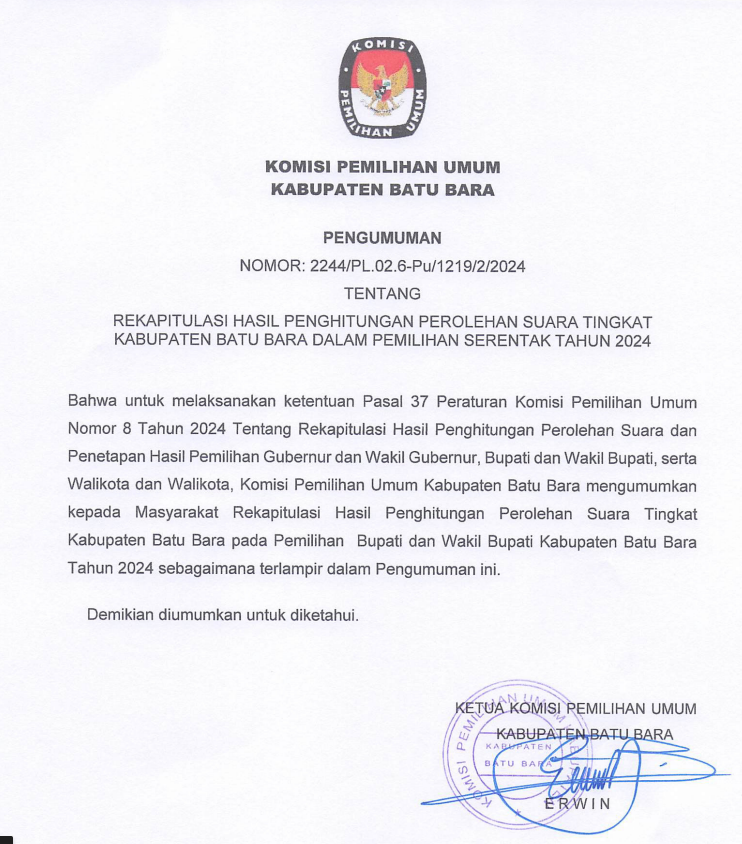 Untuk info selengkapnya #TemanPemilih dapat melihat pengumuman melalui Website Resmi KPU Kabupaten Batu Bara melalui: https://kab-batubara.kpu.go.id/