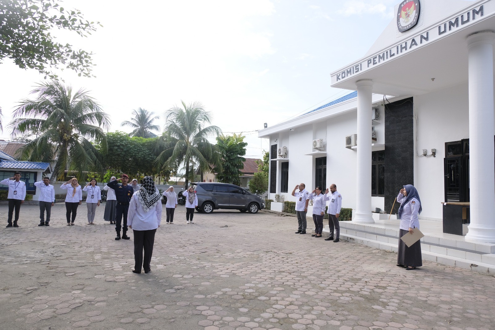 KPU Batu Bara- Bertempat di Halaman Kantor Komisi Pemilihan Umum Kabupaten Batu Bara, KPU Kabupaten Batu Bara mengadakan kegiatan apel pagi rutin, Senin, (03/06/24) Apel dimulai pada Pukul 08.00 WIB dan berlangsung dengan tertib dan lancar, Bertindak sebagai Pembina apel pada pagi hari ini, Ketua Komisi Pemilihan Umum Kabupaten Batu Bara, Erwin. Hadir pula pada apel pagi ini Anggota KPU Kabupaten Batu Bara, Sekretaris KPU Kabupaten Batu Bara, Seluruh Kasubbag dan Staf Sekretariat KPU Kabupaten Batu Bara, dan Hadir sebagai pemimpin apel, Jagat Saksana KPU Kabupaten Batu Bara, Hery Syaputra. Apel yang dimulai dengan menyiapkan pasukan, penghormatan kepada Pembina Apel, dilanjutkan laporan Pemimpin apel, Penghormatan kepada Bendera Merah Putih dan Amanat Pembina Apel. Dalam amanatnya Ketua KPU Kabupaten Batu Bara mengingatkan kepada seluruh peserta apel untuk terus meningkatkan kinerja, kekompakan maupun Kerjasama tim guna menyukseskan Pemilihan Gubernur dan Wakil Gubernur Sumatera Utara, Bupati dan Wakil Bupati Kabupaten Batu Bara dan juga tetap pedomani setiap peraturan yang berlaku. Apel yang berjalan dengan tertib dan lancar ini diakhiri dengan berdoa bersama sebelum melakukan seluruh rangkaian kegiatan pada hari ini, dan dilakukan foto bersama sebagai dokumentasi Apel Pagi pada hari ini. (WT)