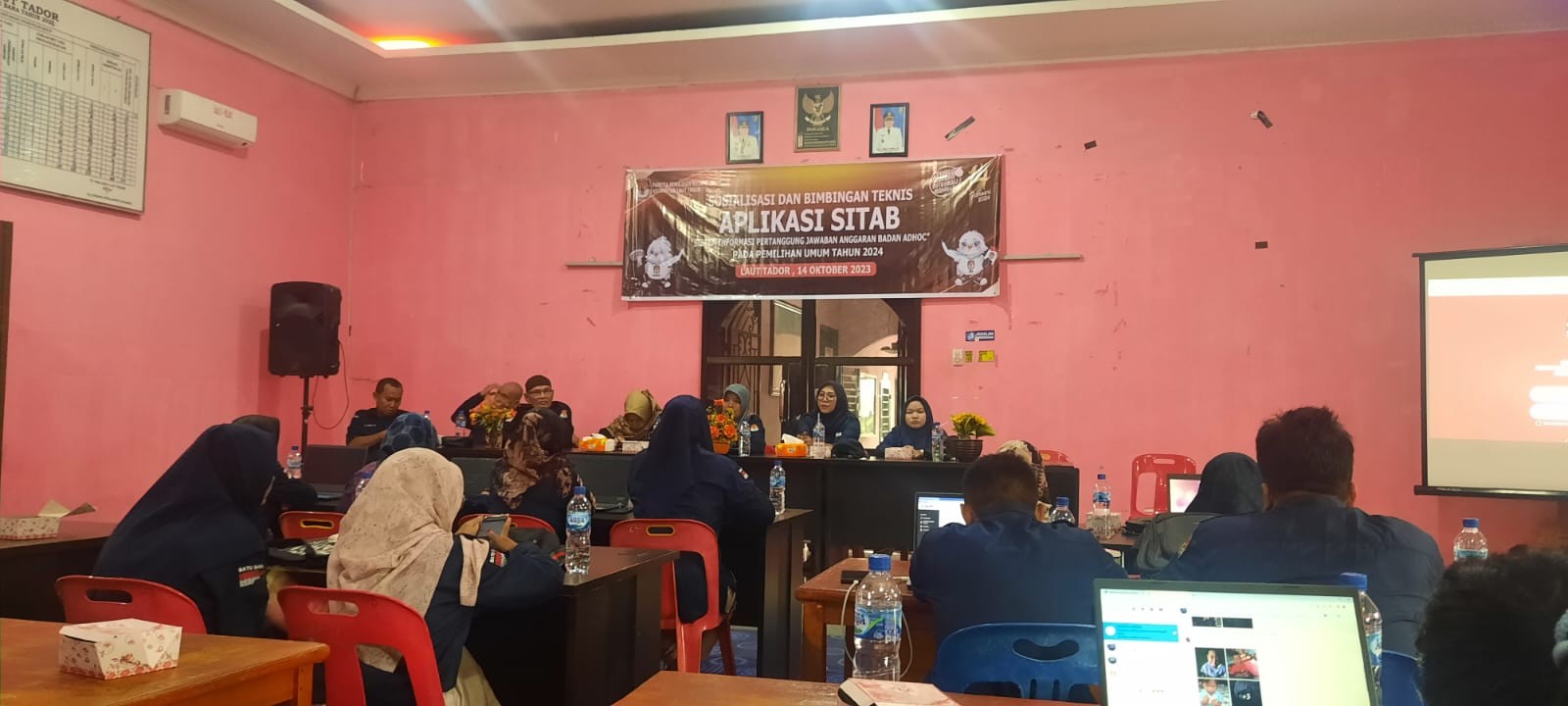 Dalam arahannya Erwin menegaskan kembali untuk mengikuti setiap rangkaian kegiatan Sosialisasi dan Bimtek Aplikasi SITAB ini dengan sebaik mungkin karena kegiatan ini merupakan wujud dari implementasi aplikasi SITAB yang diluncurkan oleh KPU guna menunjang pengelolaan anggaran sehingga sesuai dengan peraturan yang berlaku dan berlandaskan pada prinsip Konsistensi, Akuntabilitas dan Transparansi serta berorientasi pada hasil.