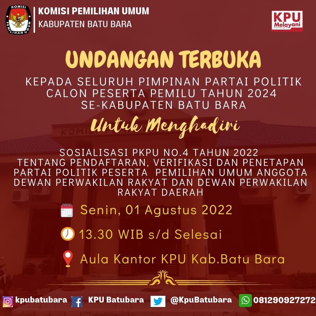 Catat waktunya, Kamis tanggal 6 Oktober 2022 ,mulai pukul 14.00 WIB hanya di kanal Youtube KPU RI..!